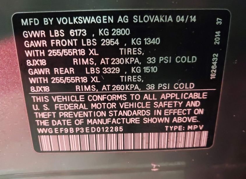 - VIN: WVGEF9BP3ED012285