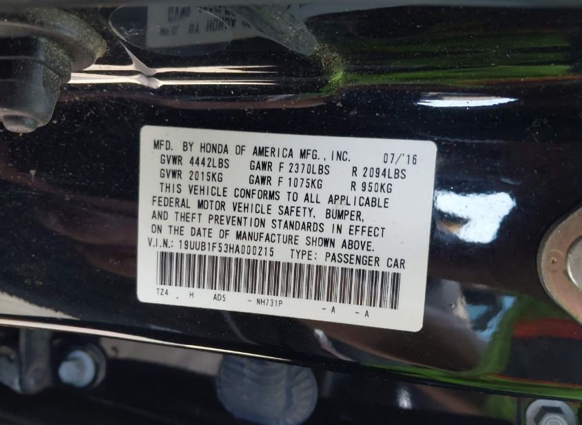 - VIN: 19UUB1F53HA000215