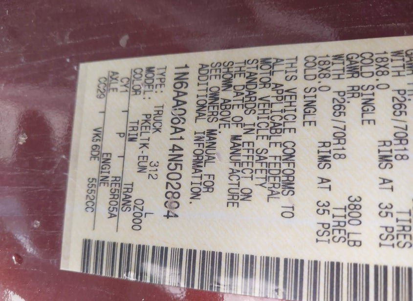 - VIN: 1N6AA06A14N502894