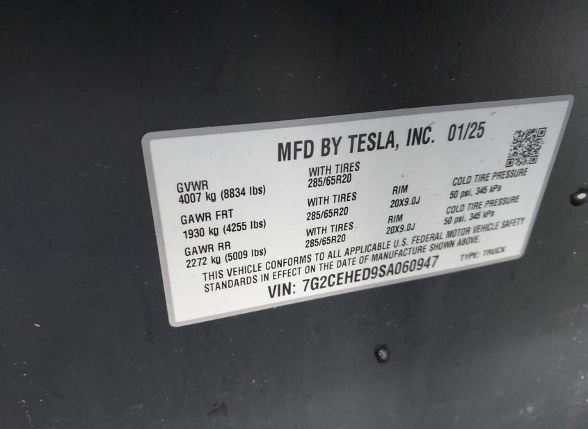 - Название лота: 2025 TESLA CYBERTRUCK