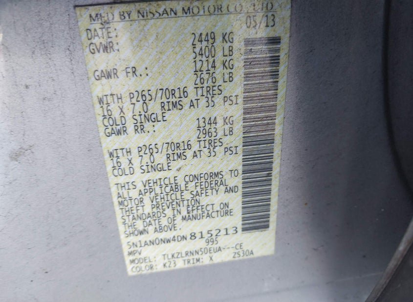 - VIN: 5N1AN0NW4DN815213
