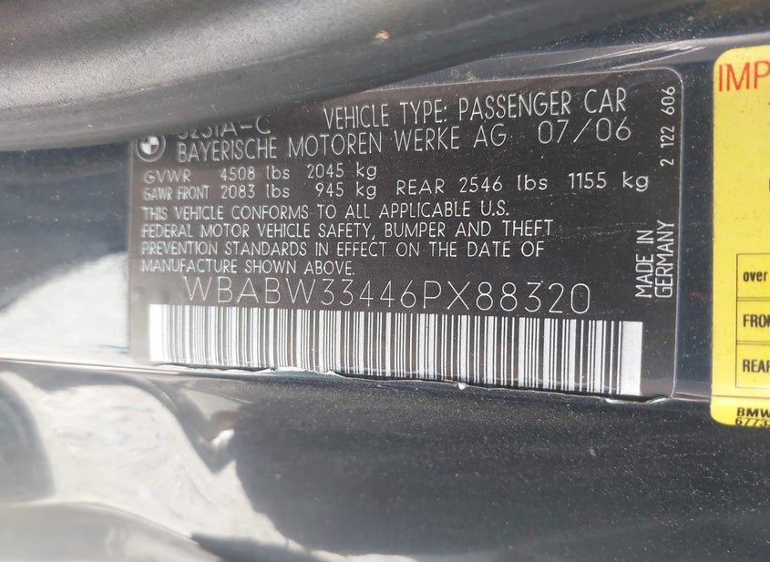 - VIN: WBABW33446PX88320
