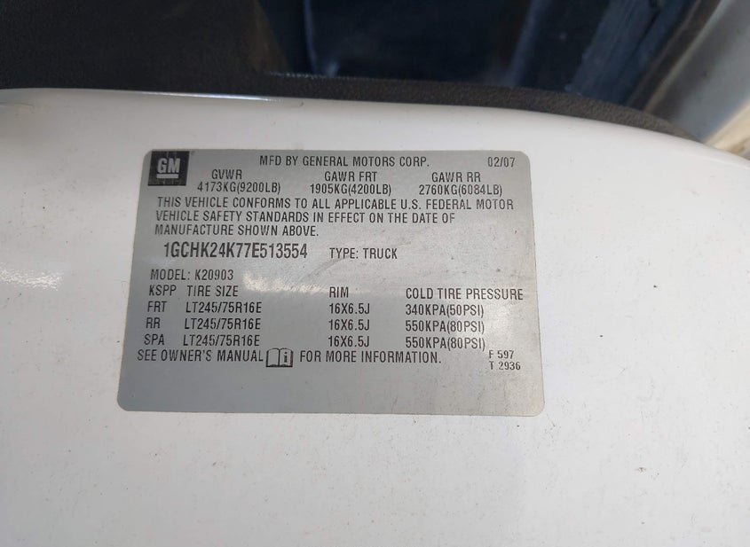 - VIN: 1GCHK24K77E513554