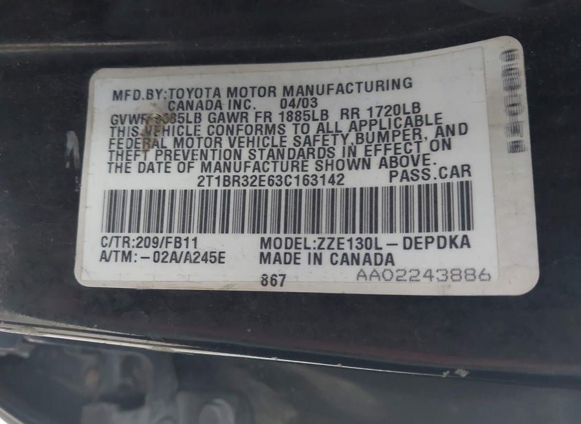 - VIN: 2T1BR32E63C163142