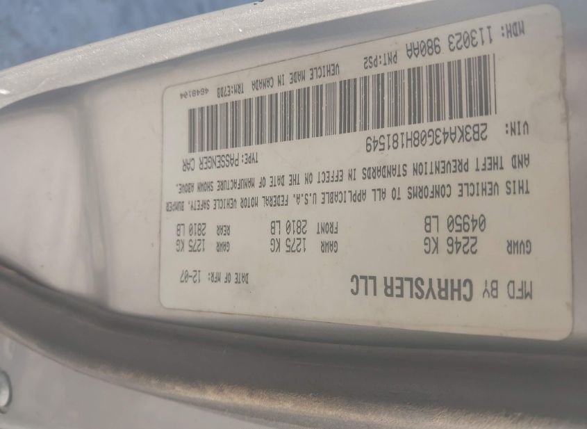 - VIN: 2B3KA43G08H181549
