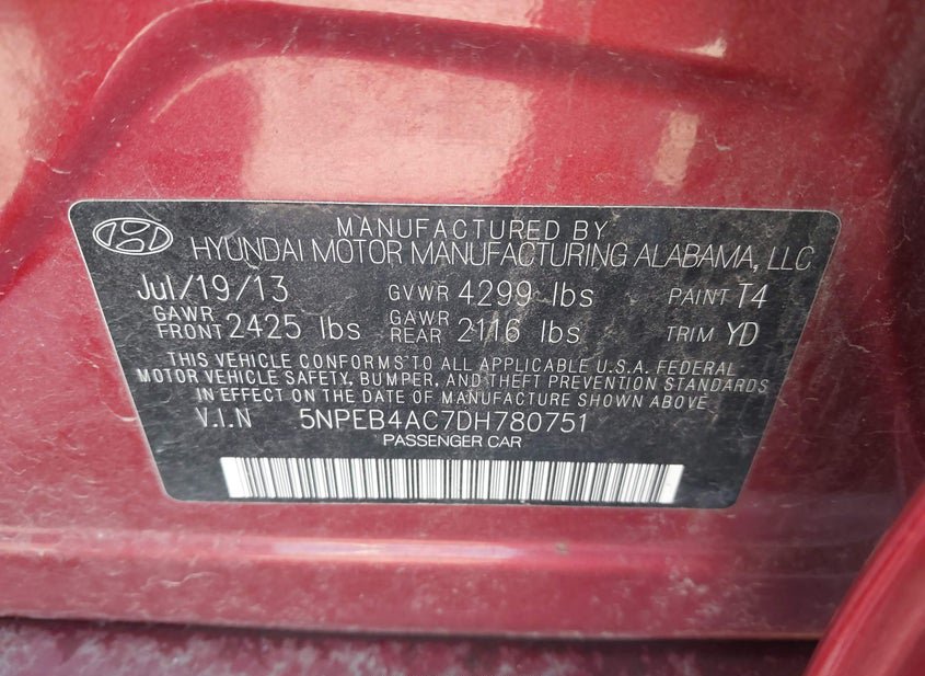 - VIN: 5NPEB4AC7DH780751