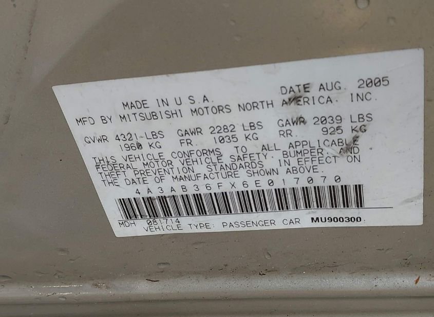 - VIN: 4A3AB36FX6E017070