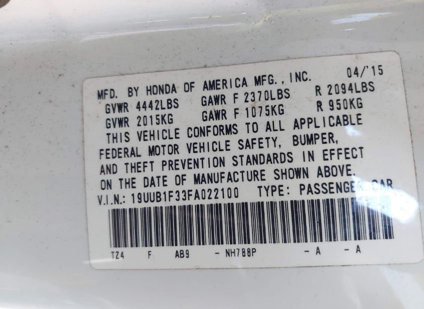 - VIN: 19UUB1F33FA022100
