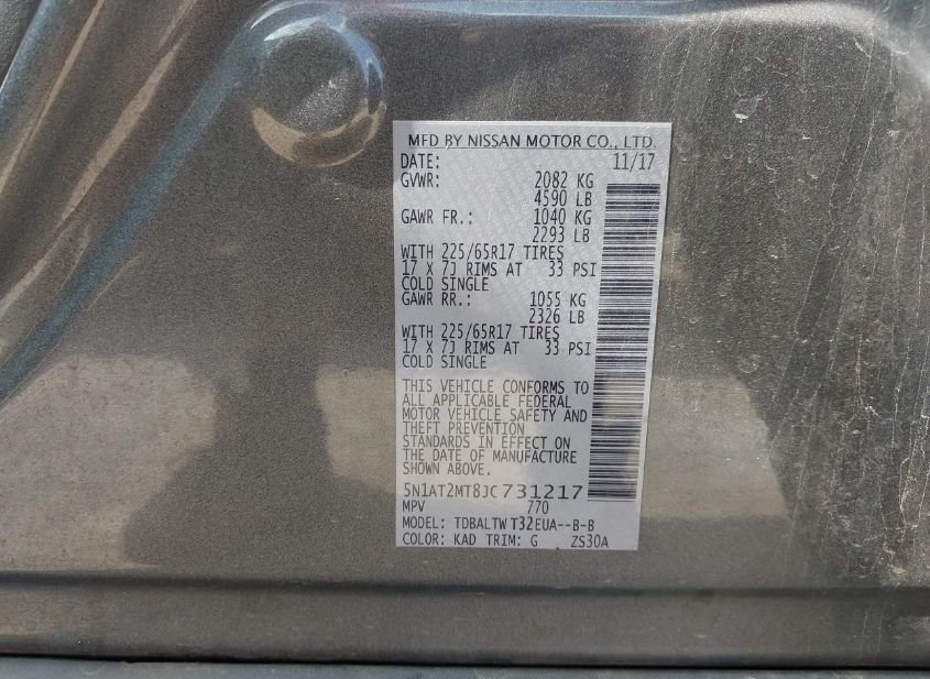 - VIN: 5N1AT2MT8JC731217