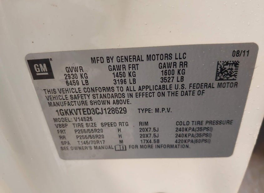 - VIN: 1GKKVTED3CJ128629