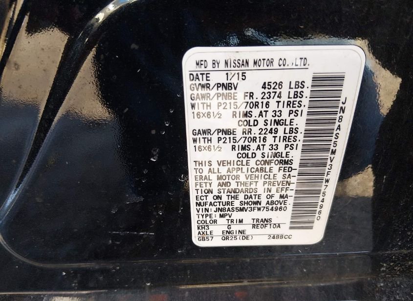 - VIN: JN8AS5MV3FW754960
