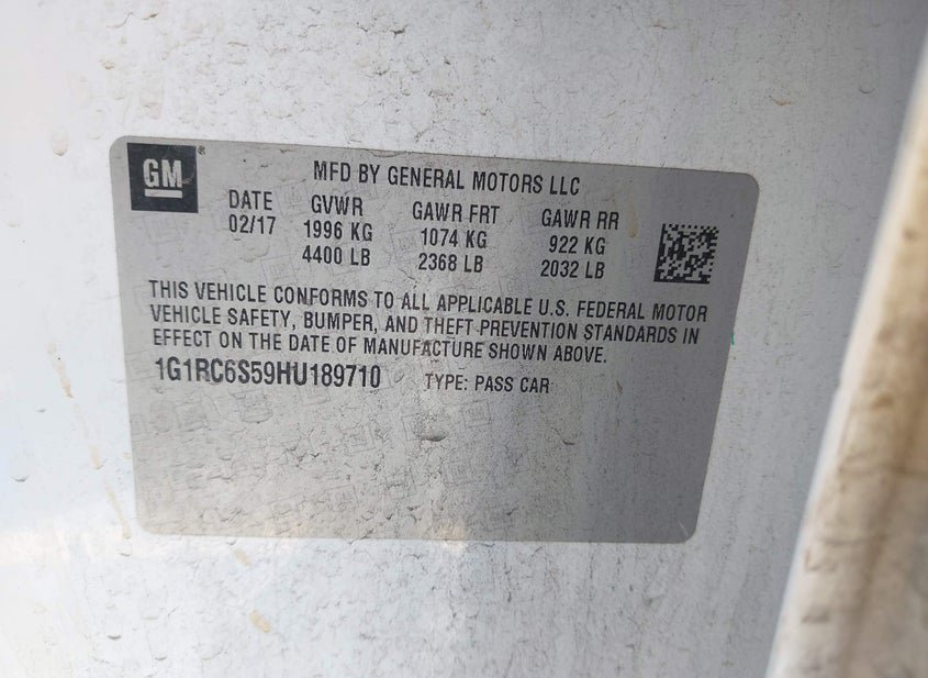 - VIN: 1G1RC6S59HU189710