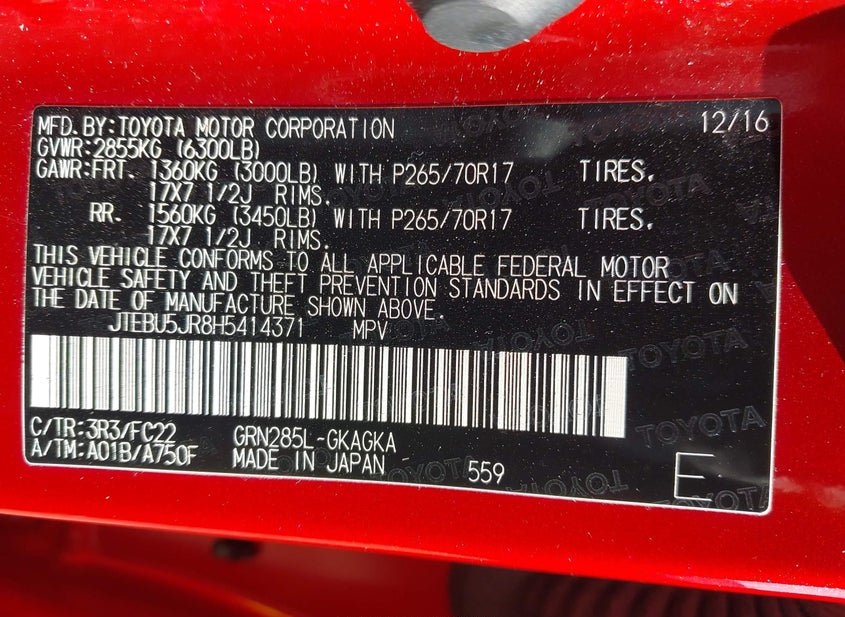 - VIN: JTEBU5JR8H5414371