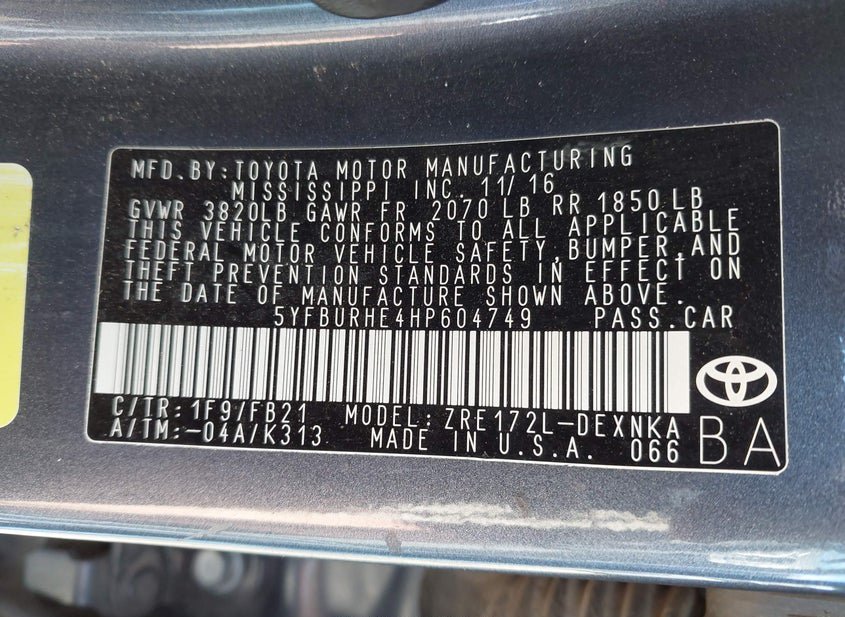 - VIN: 5YFBURHE4HP604749