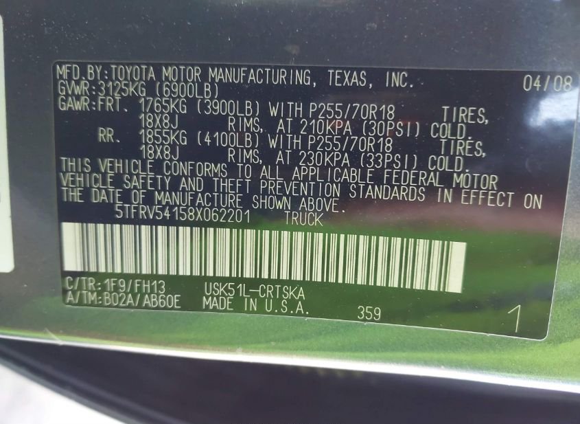- VIN: 5TFRV54158X062201