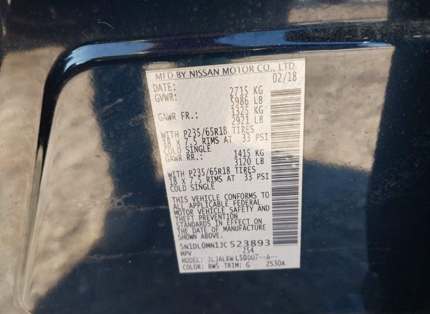 - VIN: 5N1DL0MN1JC523893