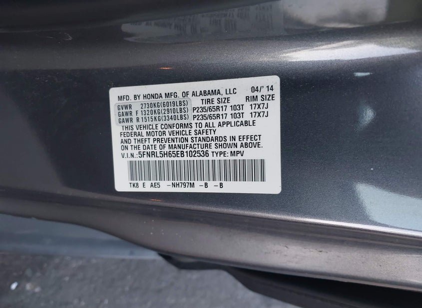 - VIN: 5FNRL5H65EB102536