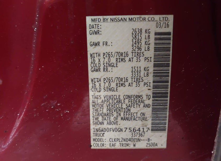 - VIN: 1N6AD0FV0GN756417