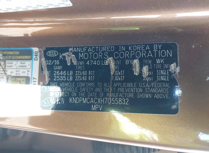 - VIN: KNDPMCACXH7055832