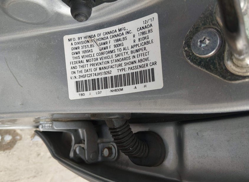 - VIN: 2HGFC2F74JH519262