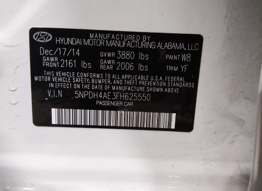 - VIN: 5NPDH4AE3FH625550