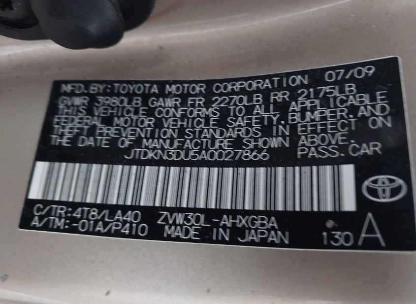 - VIN: JTDKN3DU5A0027866