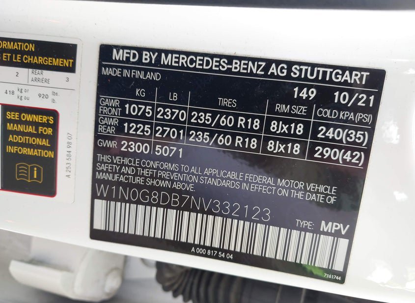 - VIN: W1N0G8DB7NV332123