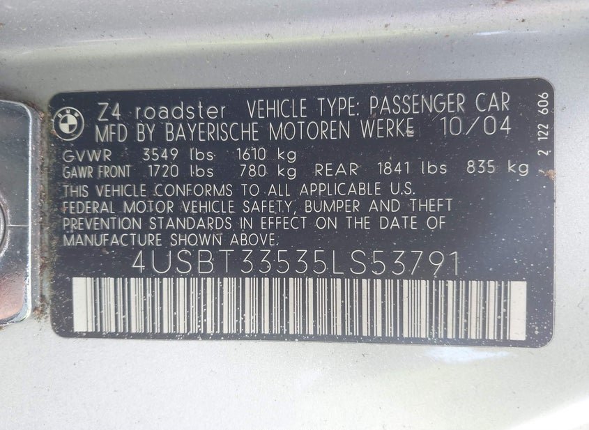- Название лота: 2005 BMW Z4 2.5I