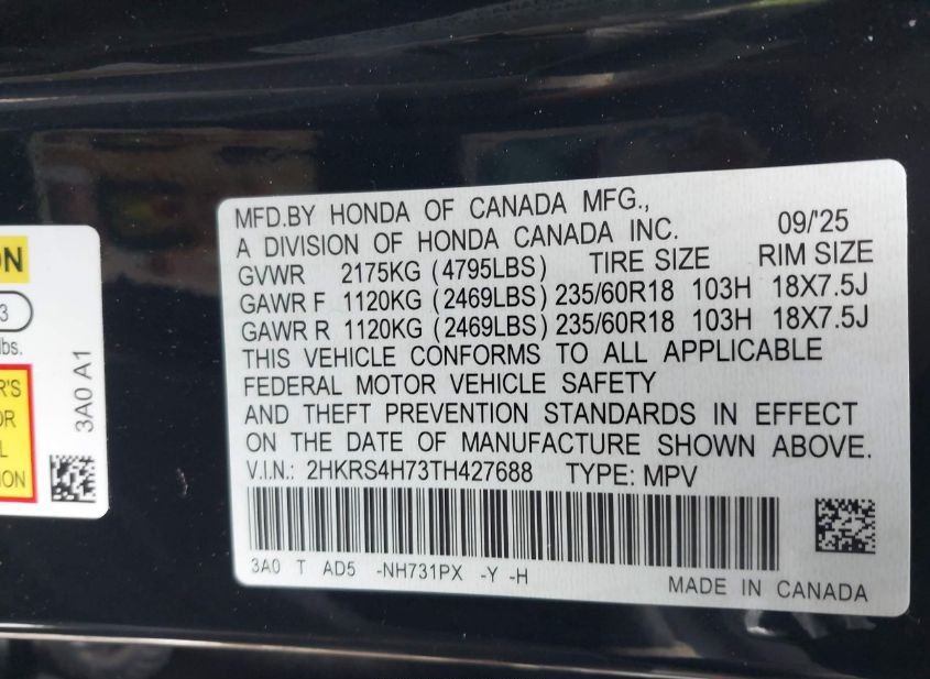 - VIN: 2HKRS4H73TH427688
