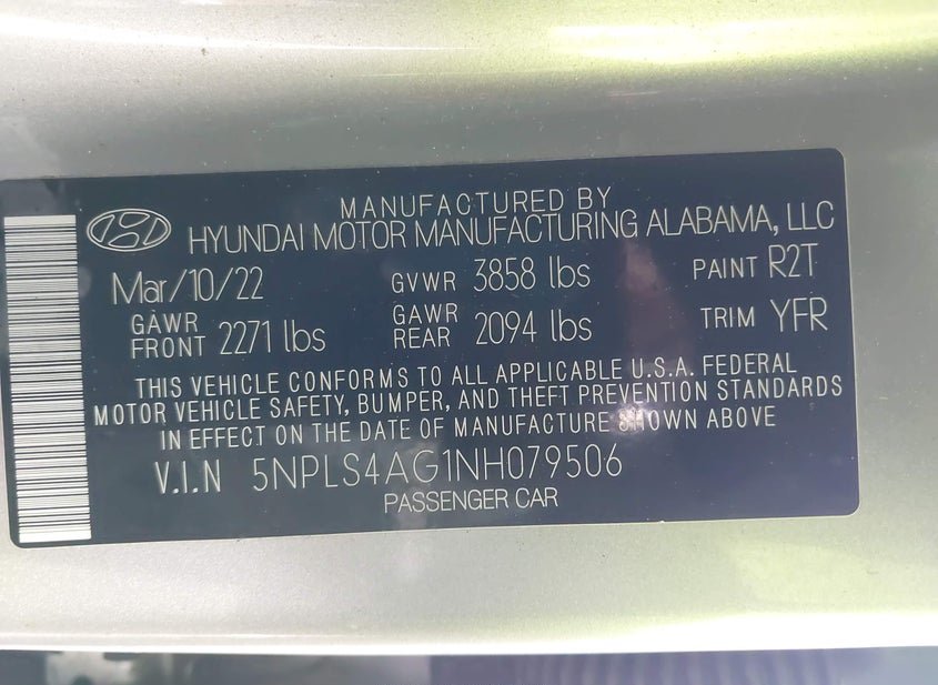 - VIN: 5NPLS4AG1NH079506