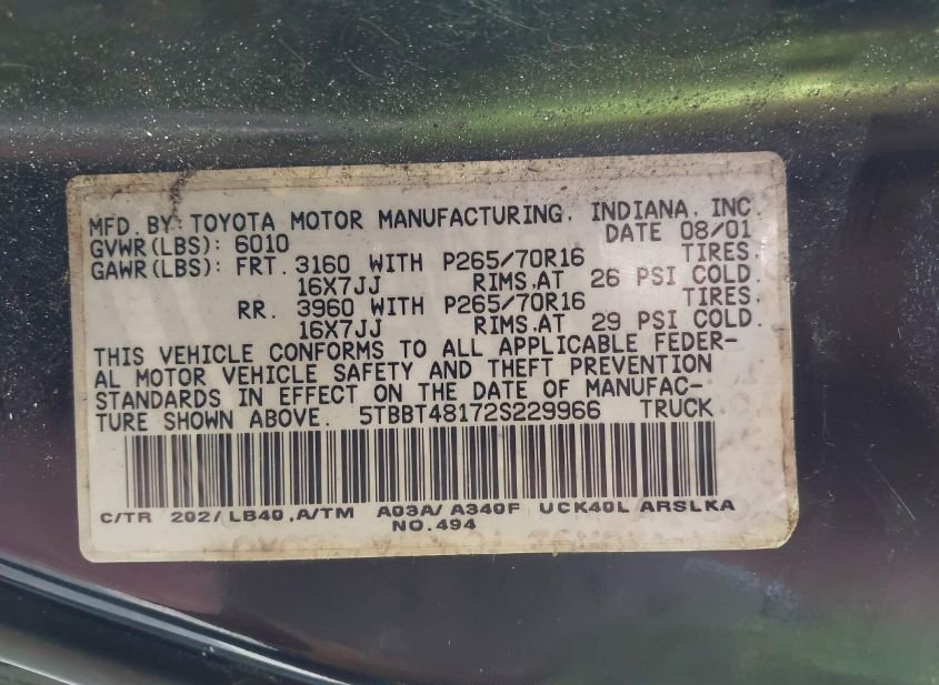 - VIN: 5TBBT48172S229966