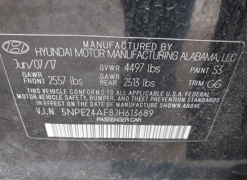 - VIN: 5NPE24AF8JH613689