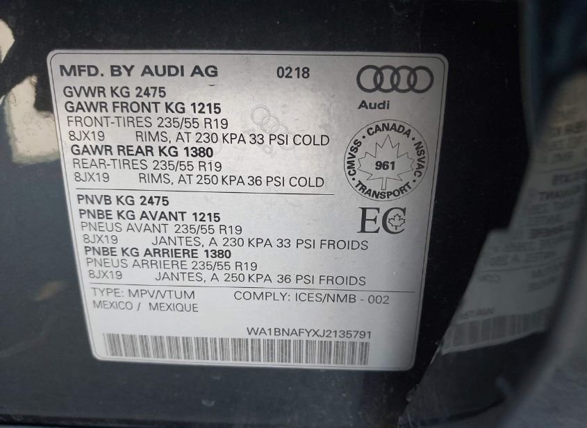 - VIN: WA1BNAFYXJ2135791