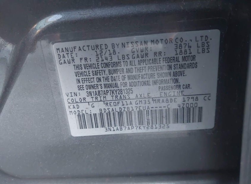 - VIN: 3N1AB7AP7KY281325