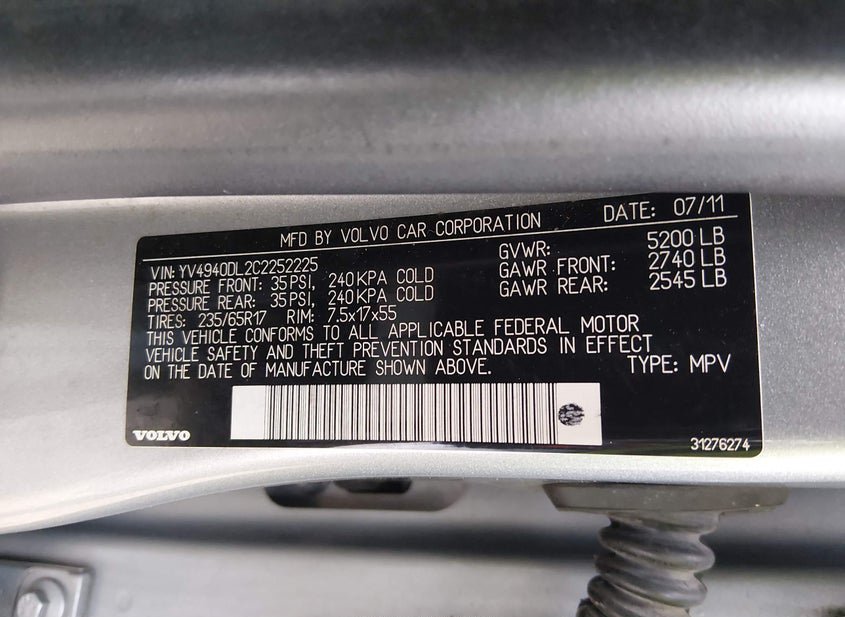 - VIN: YV4940DL2C2252225