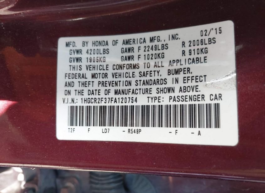 - VIN: 1HGCR2F37FA120754