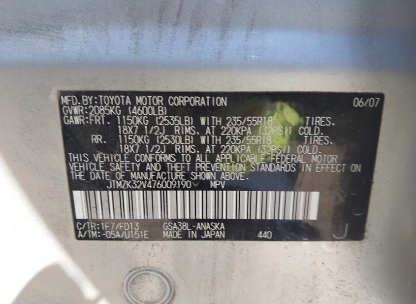 - VIN: JTMZK32V476009190
