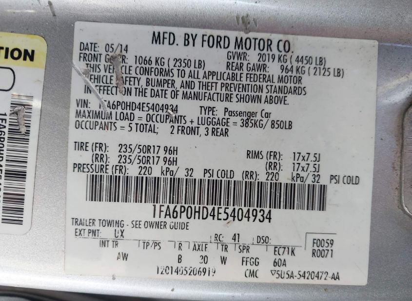- VIN: 1FA6P0HD4E5404934