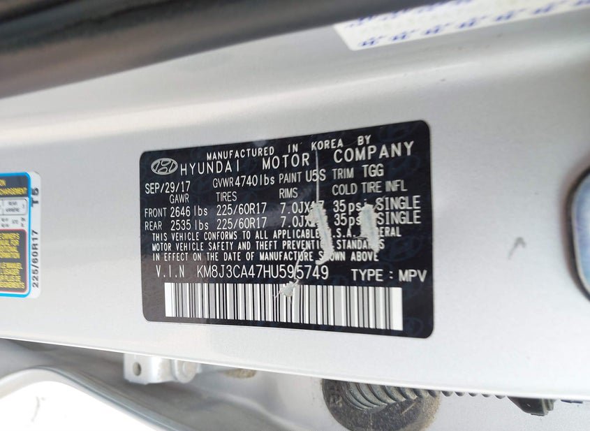 - VIN: KM8J3CA47HU595749