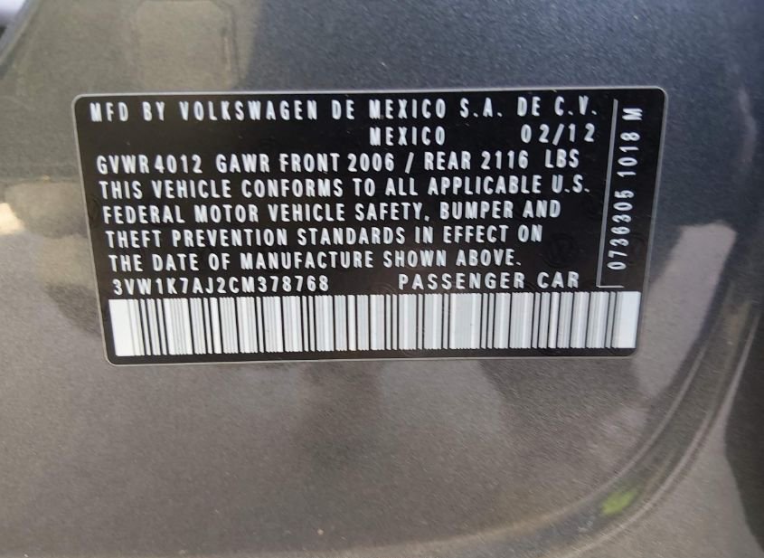 - VIN: 3VW1K7AJ2CM378768
