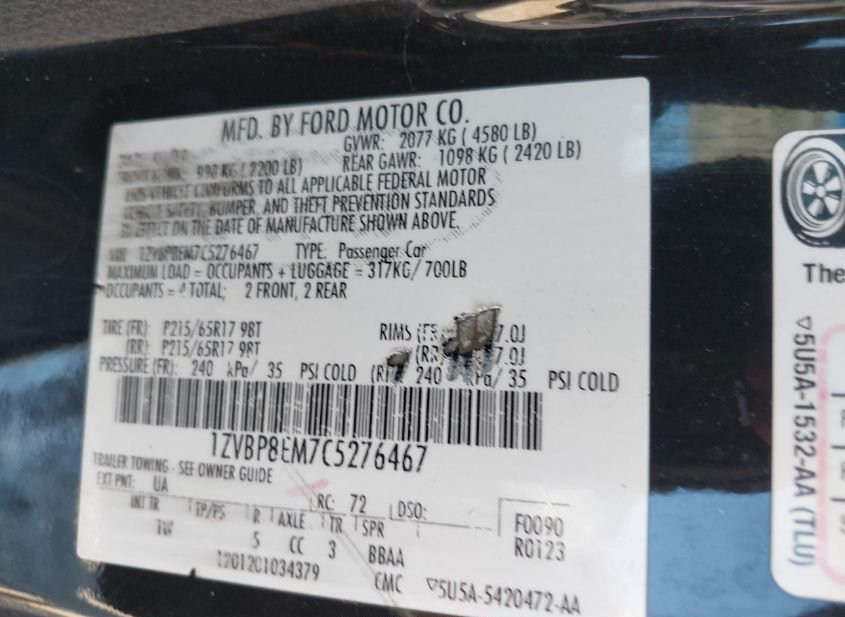 - VIN: 1ZVBP8EM7C5276467