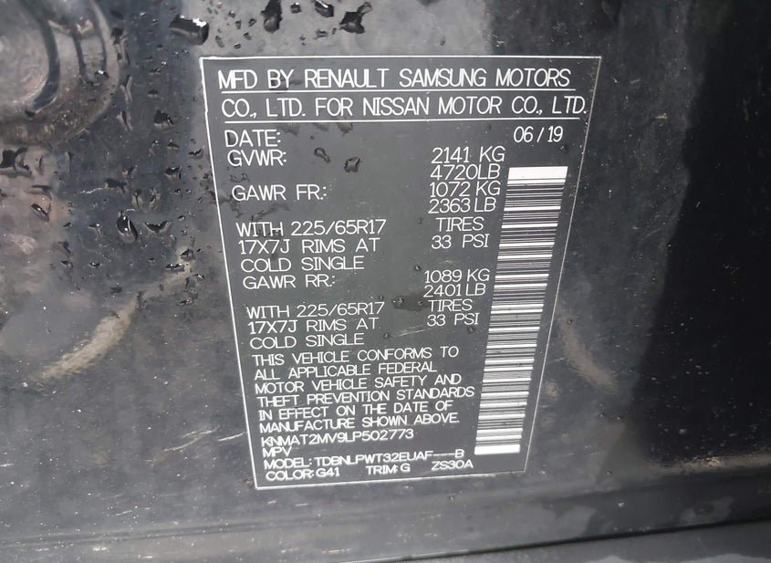 - VIN: KNMAT2MV9LP502773