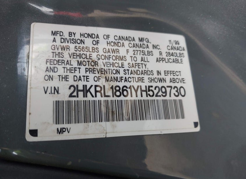 - VIN: 2HKRL1861YH529730