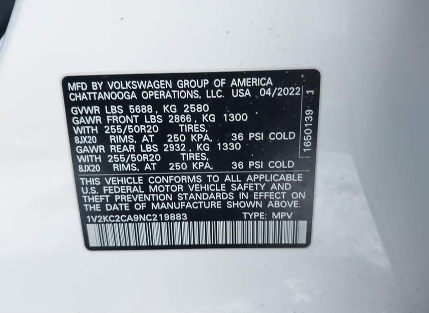 - VIN: 1V2KC2CA9NC219883