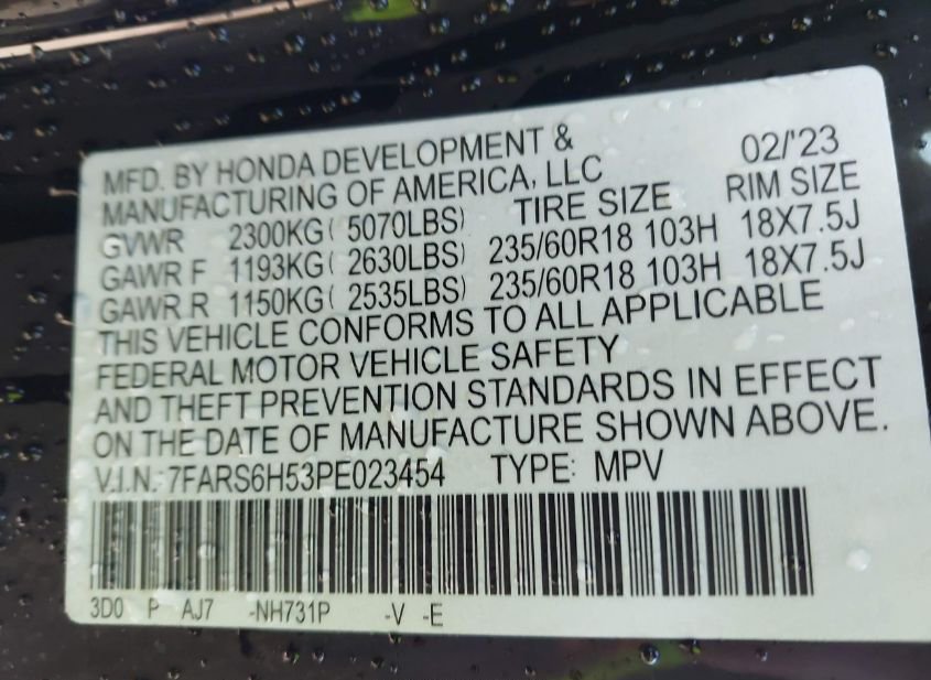 - VIN: 7FARS6H53PE023454