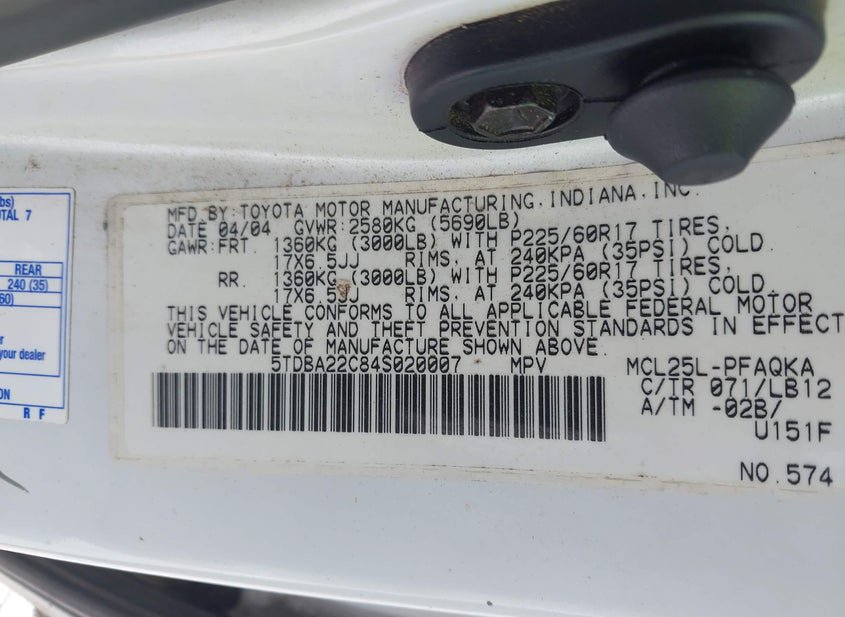 - VIN: 5TDBA22C84S020007