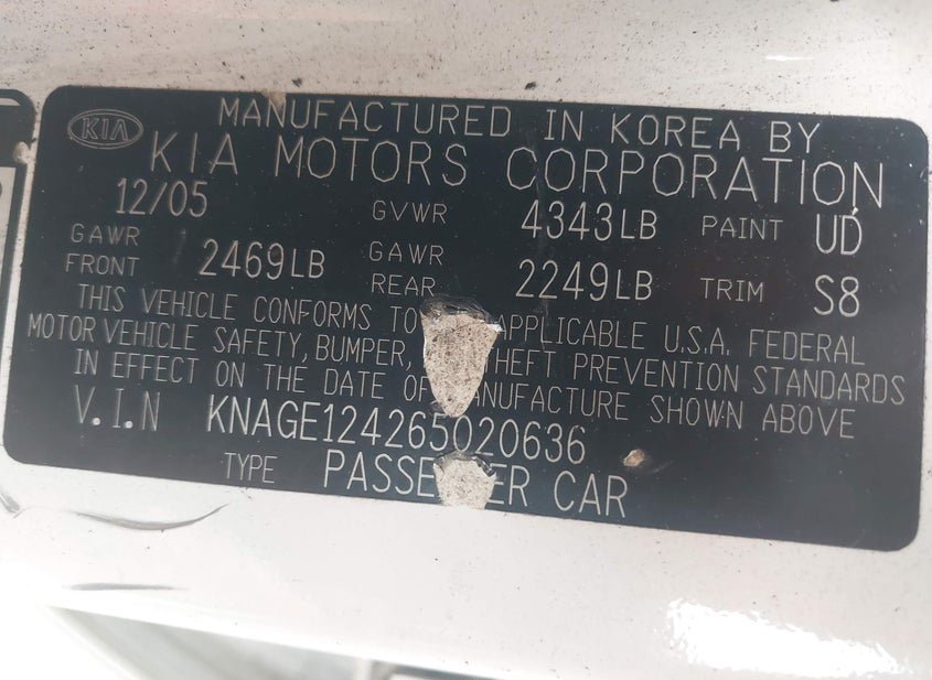 - VIN: KNAGE124265020636