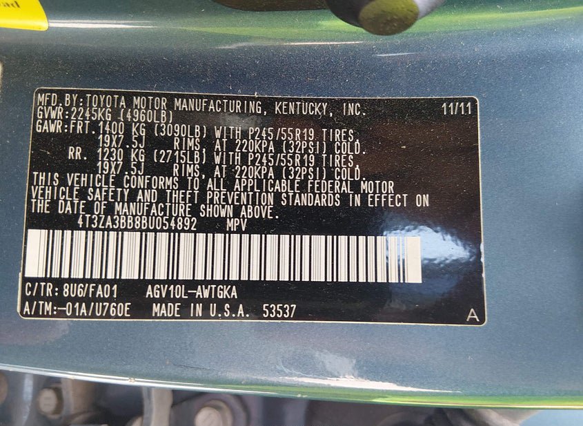 - VIN: 4T3ZA3BB8BU054892