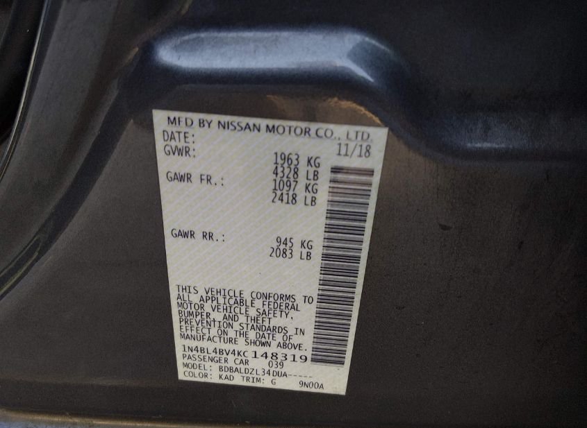 - VIN: 1N4BL4BV4KC148319