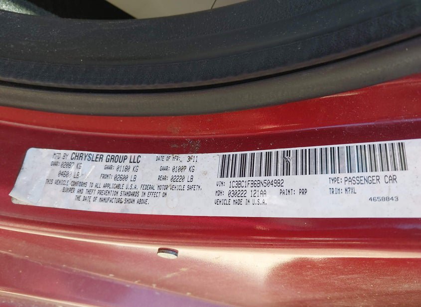- VIN: 1C3BC1FB6BN504982